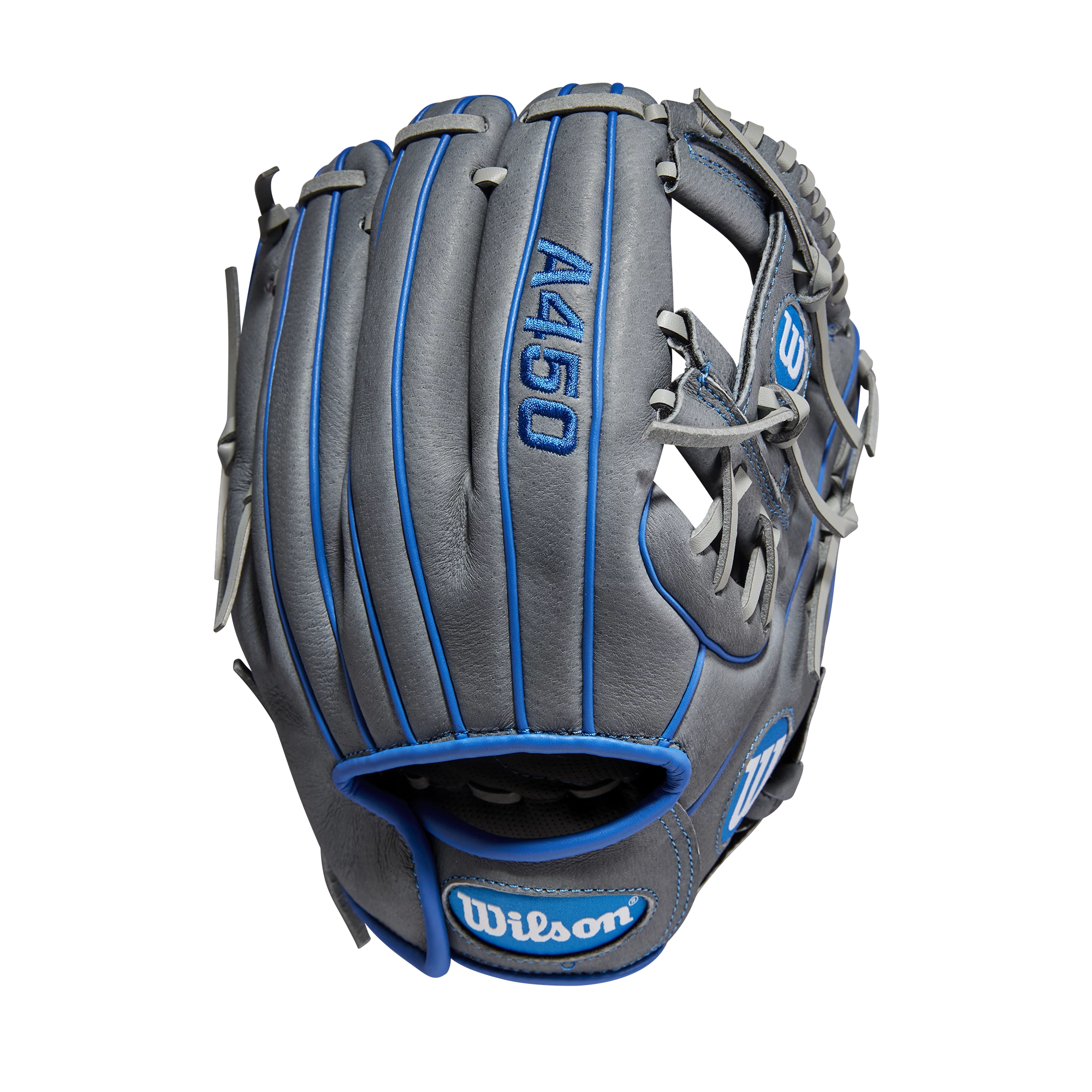 Perfect your infield fundamentals with the 2022 A450® 10.75” Infield Glove. The Grey and Blue design with our iconic H-Web is lightweight and game ready.