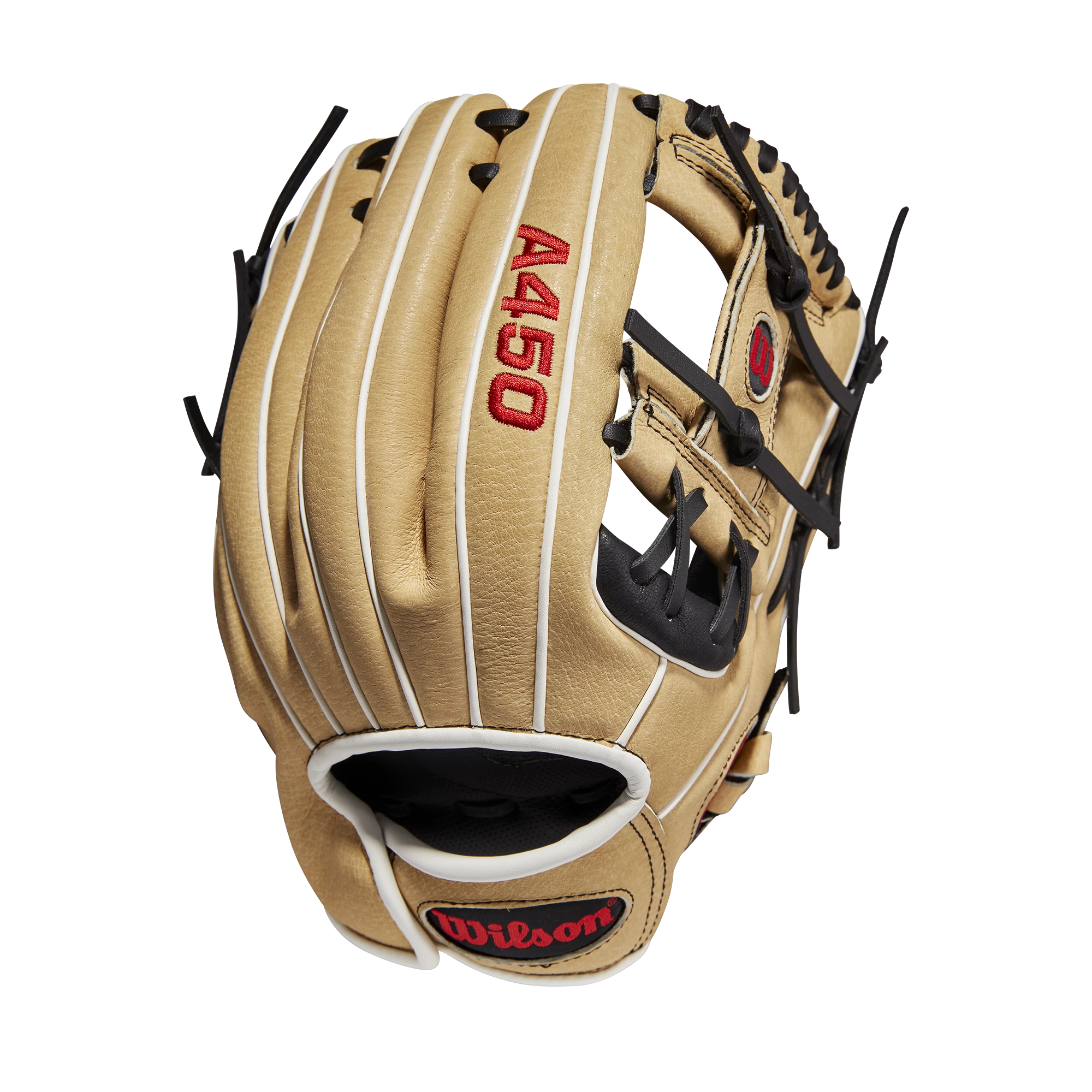 Perfect your infield fundamentals with the 2022 A450® 11.5” Infield Glove. The Black and Blonde design with our iconic H-Web is lightweight and game ready.