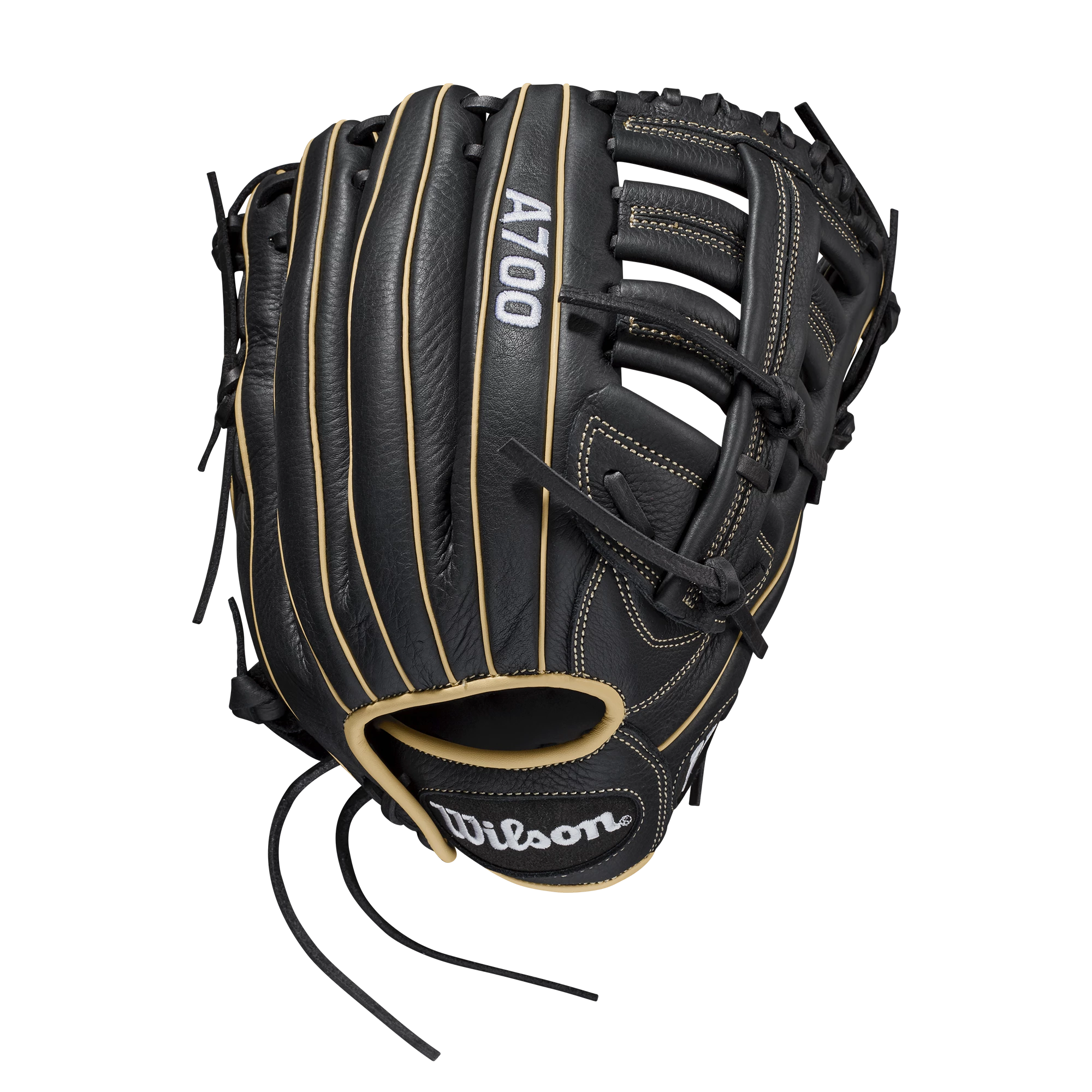 Go after fly balls on the outfield grass with the A700 12.5” Outfield Glove. Black and Blonde Full Grain leather with a sturdy Single Post & 3 Bar Web is game ready on day one.
