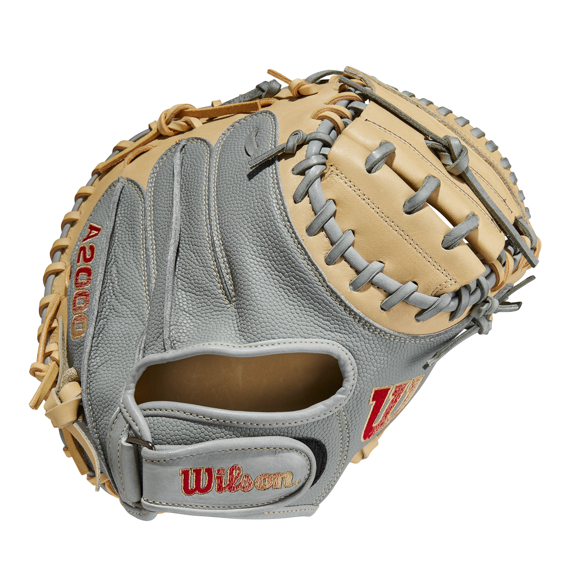 Set up behind the plate with the A2000® PF33, the baseball catcher’s mitt designed to empower emerging backstops. This 33” catcher’s mitt is engineered with Pedroia Fit technology – a Velcro wrist strap and shorter finger stalls – to help create a secure fit for players with smaller hands. Equipped with a Blonde Pro Stock® leather palm, Half Moon Web and deep pocket, the A2000 PF33 helps catchers receive every pitch. The Grey SuperSkin™ back reduces glove weight and repels moisture to further improve command, and gradient Bold Logos enhance the mitt’s modern look.