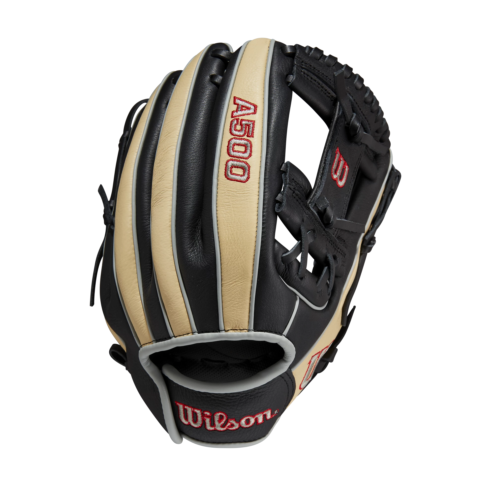 The 11.5” A500, ideal for youth ballplayers who see time at every position, features Wilson’s iconic H-Web to corral the ball. The all-leather construction offers a durable and lightweight feel with Black and Blonde Top Grain leather, binding and dual welting. Engineered for youth players, the A500 boasts a Quick Fit Wrist elastic system that adjusts to hug the wrist, and finger stalls are short and narrow for a steady control of the glove.