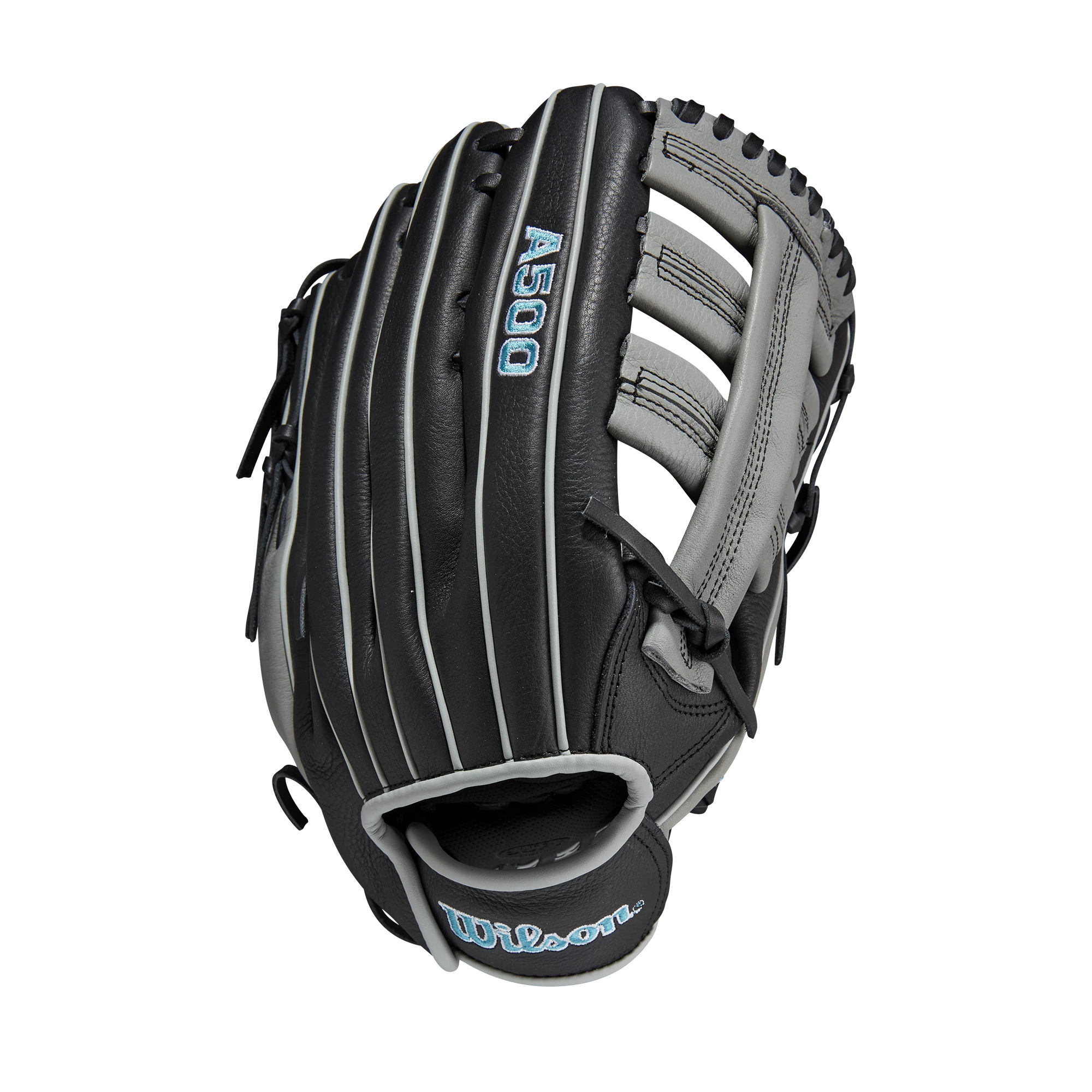 The 12.5” A500, ideal for youth ballplayers who get most of their work in the outfield, features an Open Single Post Web and extra-long reach to extend for fly balls. The all-leather construction offers a sturdy and lightweight feel with Grey and Black Top Grain leather, Grey binding and dual welting. Engineered for youth players, the A500 boasts a Quick Fit Wrist elastic system that adjusts to hug the wrist, and finger stalls are short and narrow for a steady control of the glove.