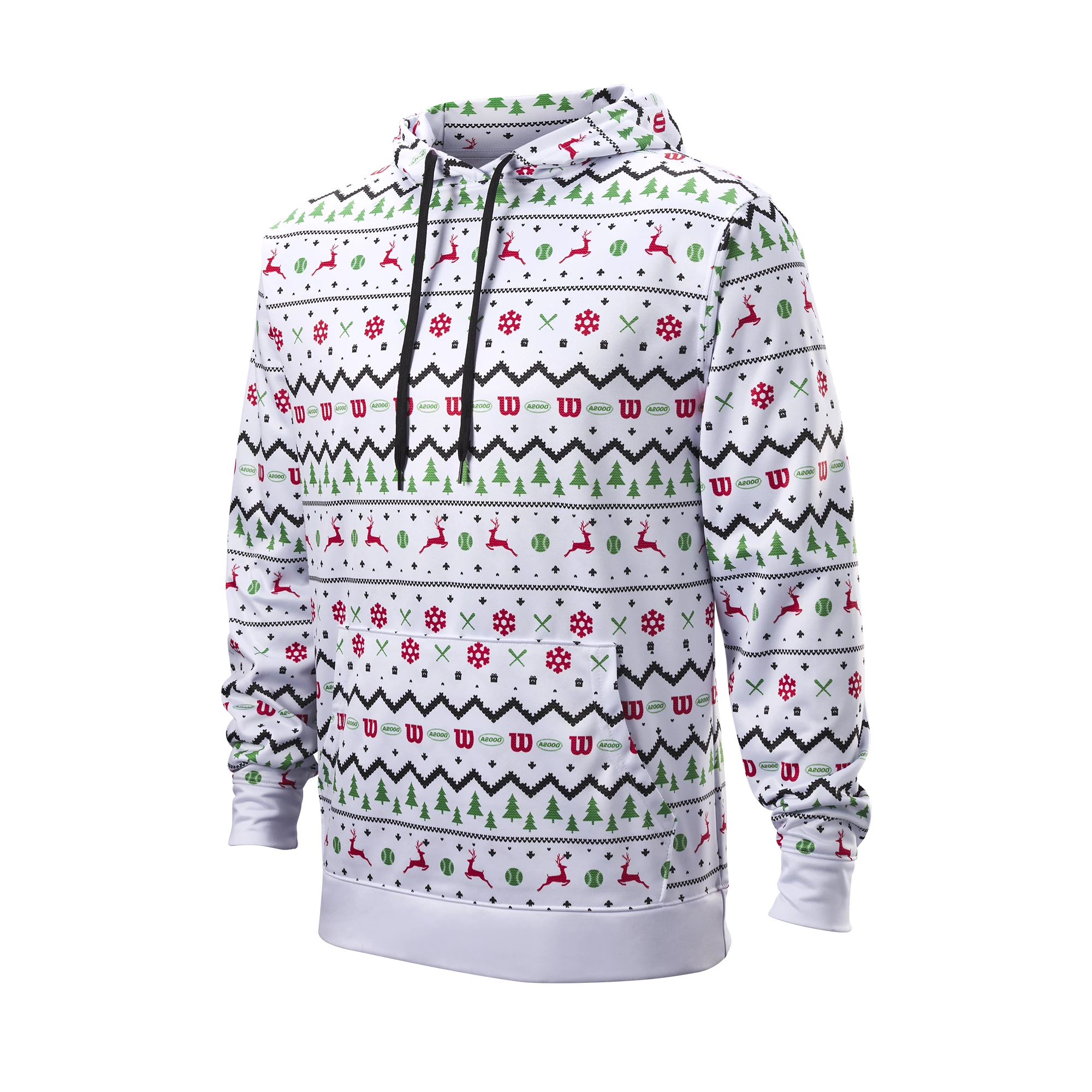 Your beloved A2000® keeps you on top of your game all year round, and now you can rep the biggest brand of ball gloves in the offseason with the Wilson A2000® Holiday Sweater Hoodie. With a three-piece hood and kangaroo pocket, this polyester hoodie will keep you warm all winter and let you show up to the team holiday party in style. Decked out in pine trees, snowflakes, reindeer, baseballs and Wilson A2000 logos, this white holiday hoodie lets everyone know how much you love your glove during the most wonderful time of the year.
